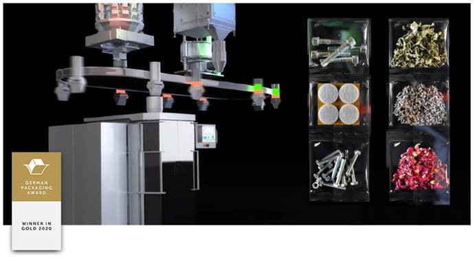 Ez egy rendkívül innovatív és nagyon rugalmas lehetőség a különféle komponensekből álló termékek egyes- vagy lánctasakokba történő adagolására.